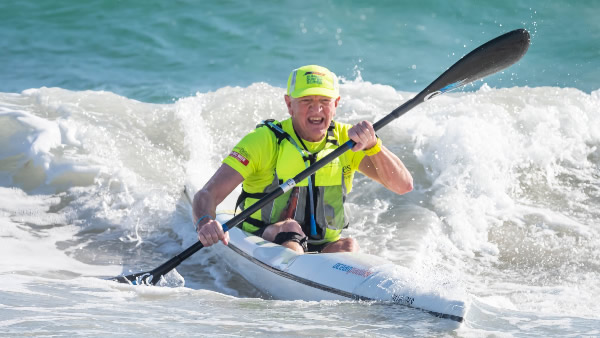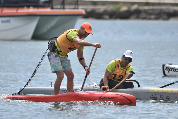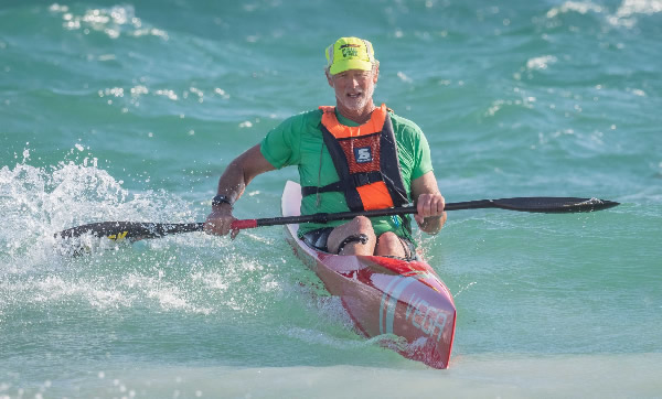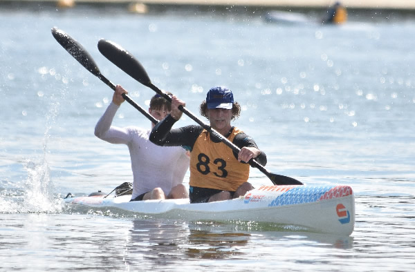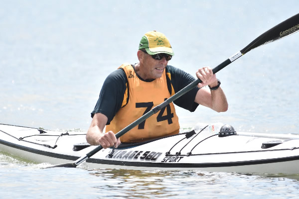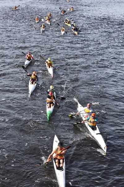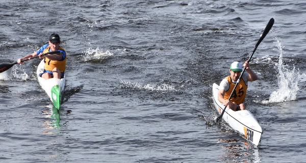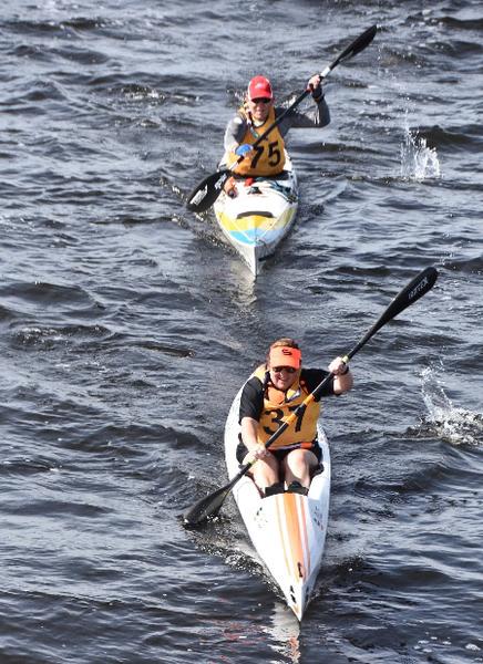 Morbey and I who took out first place. There were 82 boats taking part and only 62 of those were kayaks or skis so it’s not as popular as it was, although there are now more outriggers and SUPs racing. 4 of the outriggers had six paddlers in each.