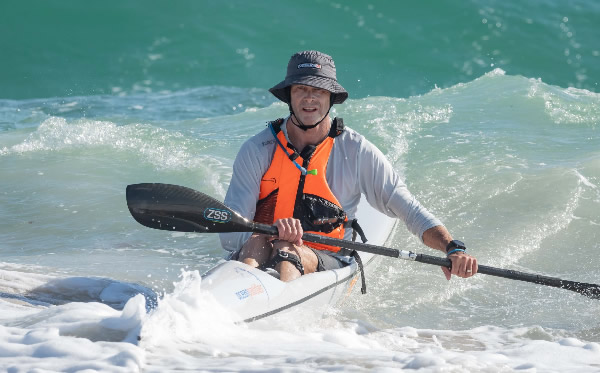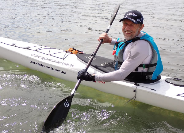 Alan Moreby paddling a sea kayak. Photo Lawrence Greed.