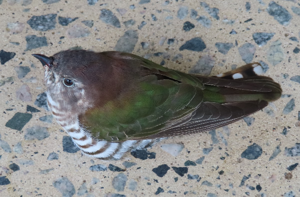 This Shining Bronze-Cuckoo hit our window and landed on our balcony. It was stunned for a while but later flew off.
