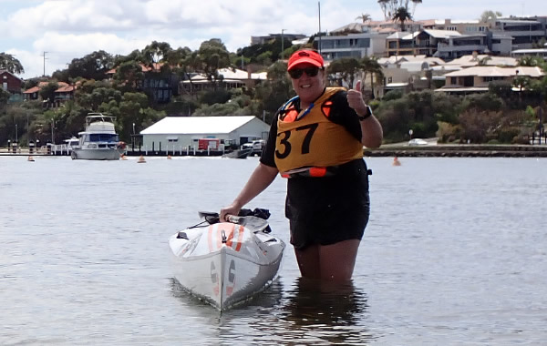 Julie McDonald at the finish. Classic Paddle Sunday 9 October 2022