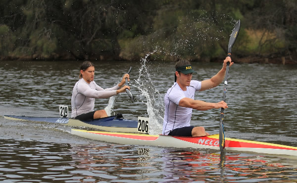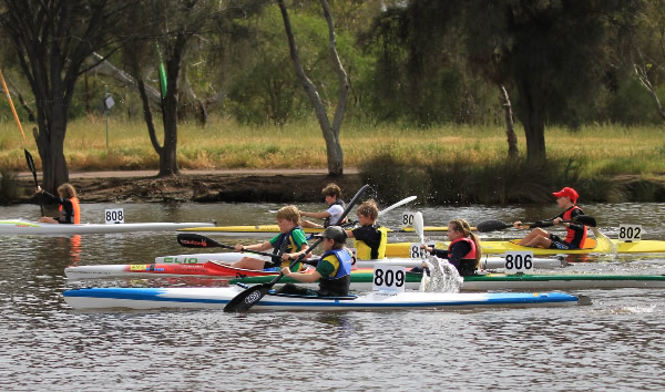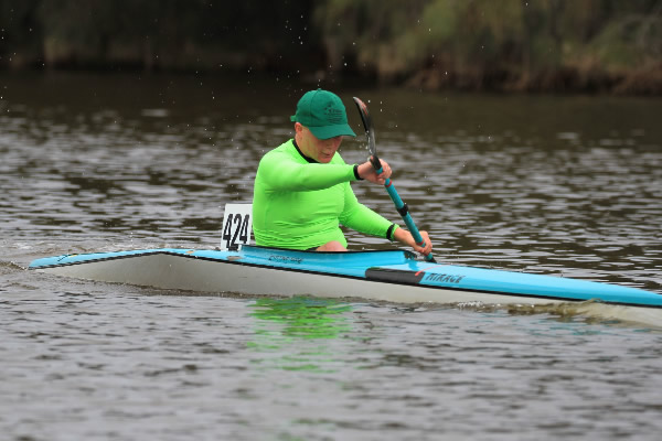 The guppies are off. Photo Rod Hale. It was the first marathon of the season and with 158 paddlers entered it was going to be pretty spectacular. The race had brought out several paddlers who had been in hibernation for a few years and others who I hadn’t seen at a marathon race before. After the briefing paddlers headed to the start line about 220 metres upstream. It was the fastest off first and most grids were packed across the river with the doubles going off first. As some paddlers warmed up and milled around they forgot to keep an eye out for their start so a few missed their grid, including Luke Dooley who was about 60 metres away when his grid