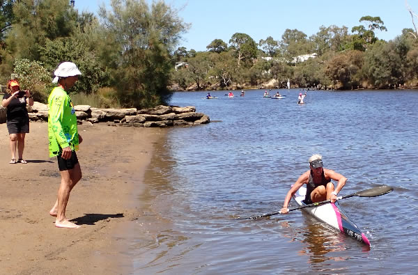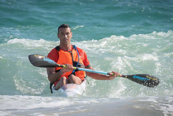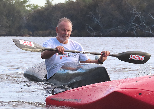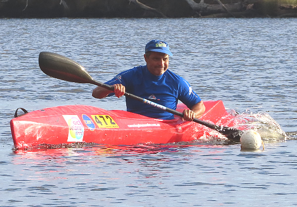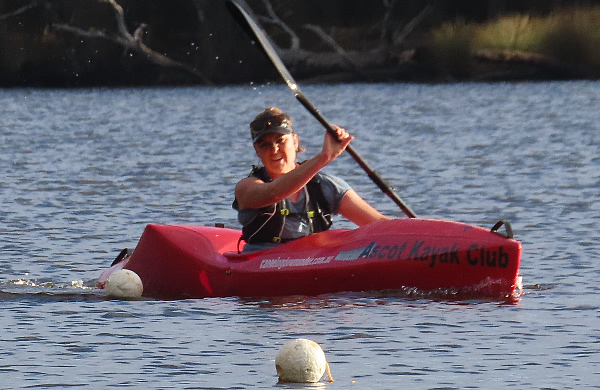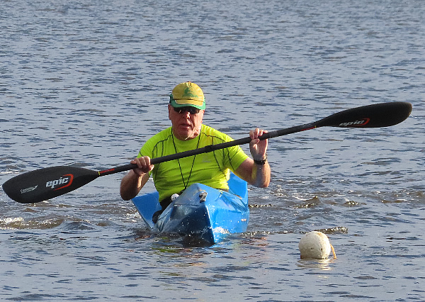 Today was the first time that Mark Pracilio tried kayak paddling. He usually paddles a surf ski so it was a new experience for him. He found it much more difficult that paddling a boat with a rudder. But after one or two more