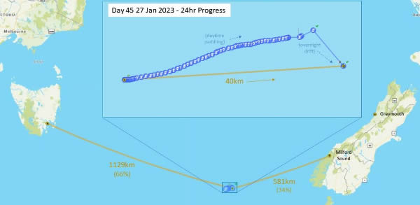 On destination, Invercargill still a possibility. I paddled NE today, but made due E because of the wind. Milford still calmer, safer, preferred.