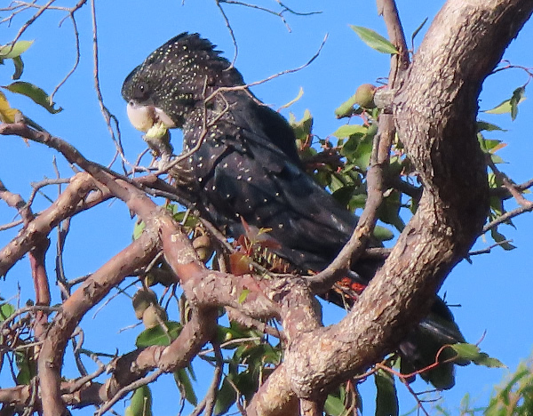 Red Tailed Black Cockatoos are out in force and enjoying the honky nuts of the marri trees outside home.