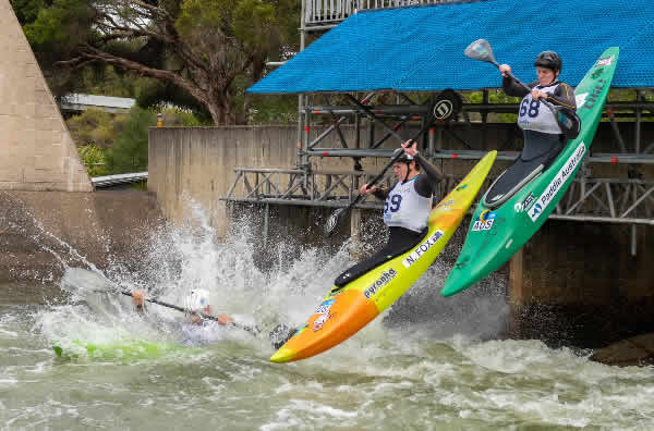 Extreme Slalom (Kayak Cross) Extreme Slalom (KayakCross) is set to make its Olympic debut at the Paris Olympic Games. Action at the Penrith Open.