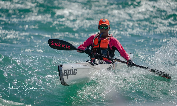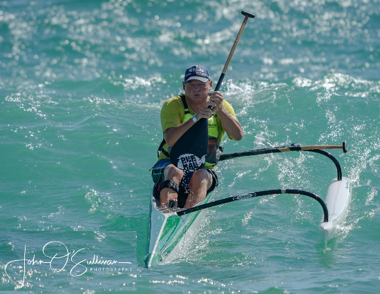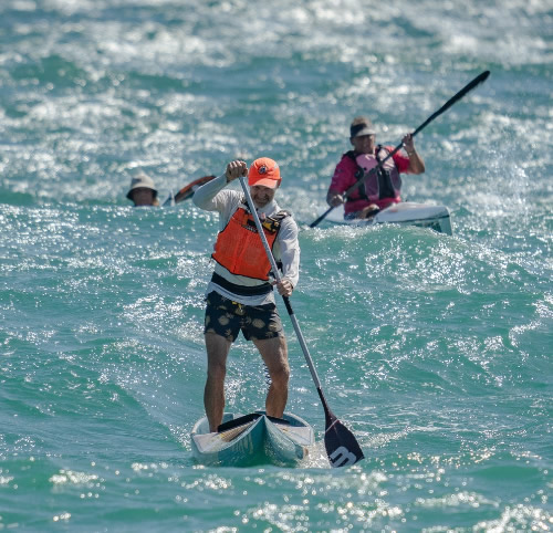Darren Pratt paddles strongly on his SUP. Photo John O'Sullivan.
