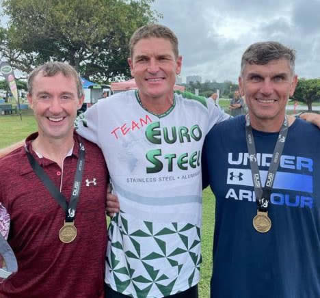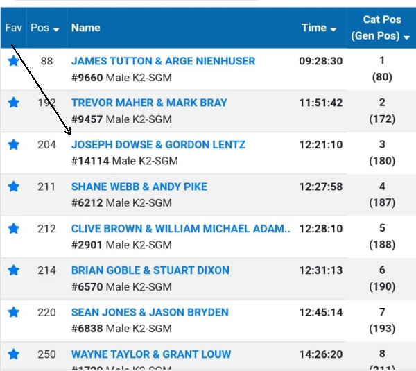 the training we were spent. We had drunk over 6 litters of liquids from the start of the day and had run out so it was a dry grinding slog to the line. We were greeted by Hank McGregor who gave a big “hello mates” to the Aussies for finishing on such a big Dusi.