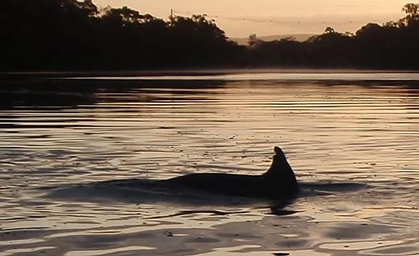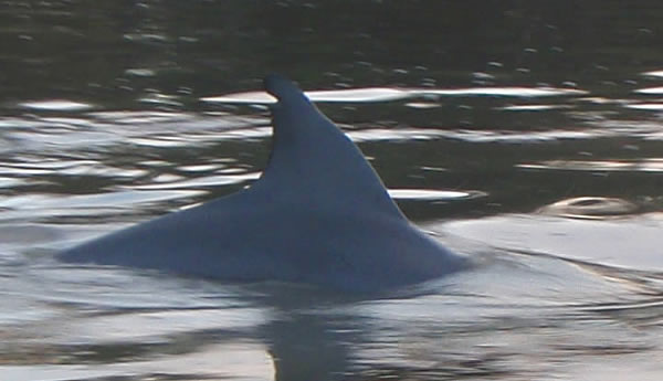 river. They played hide and seek with us for a while surfacing all around us. The parent even jumped clean out of the water, but now it was even more difficult to take a photo with the strong wind and river waves upsetting my balance. Eventually I decided to turn and head for home leaving Stephen to follow them further up-river. The dolphins have been pretty active in this section of river in the last two weeks giving us a show on Saturday and a few days previous. Lets hope they keep coming back.