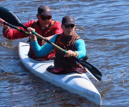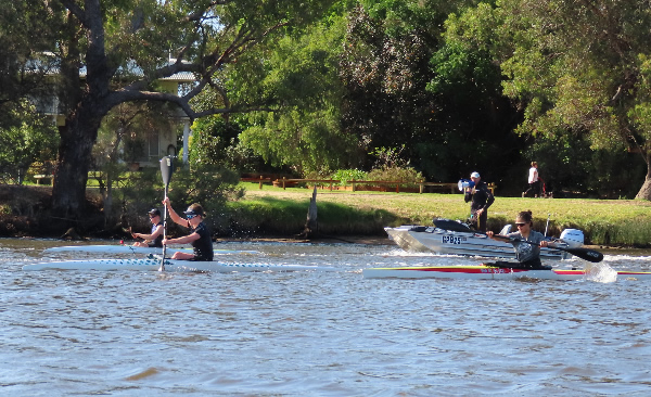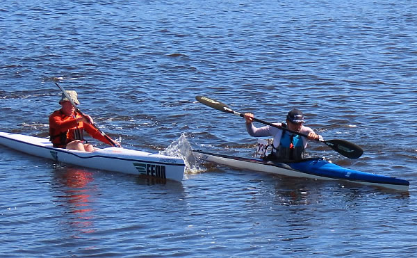 kilometre to go an Epic double ski with David Macaulay / Luc Jacob came by but unfortunately for me they passed on Paul’s side so he got a better wash. As we neared the end and back in the shallows Dave & Luc increased their pace, which caused me some pain, as I was dropped and Paul kept with