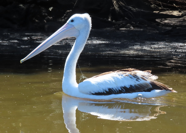 Yet another pelican with a fishing line in it mouth and tangled around its leg. I called Sea Bird Rescue.