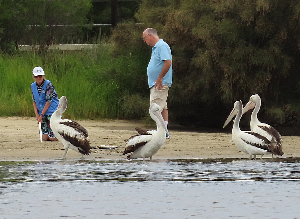 Mary Walsh and partner trying to catch the pelican that was tangled in the fishing line. They managed to catch it eventually but there was another one that they weren't able to catch that day. They will