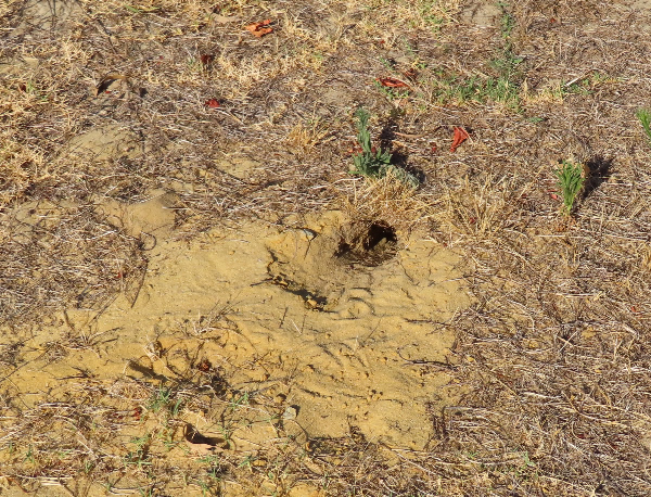 and nest underground. They usually pick a sandy bank for their nesting site but this one is directly into the ground. They dig a long tunnel (with an average length being about 80-90