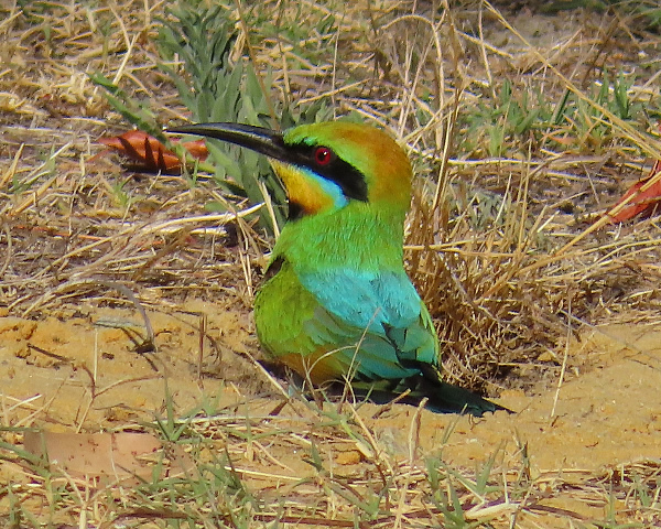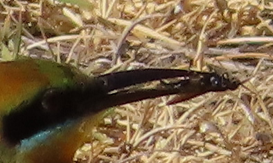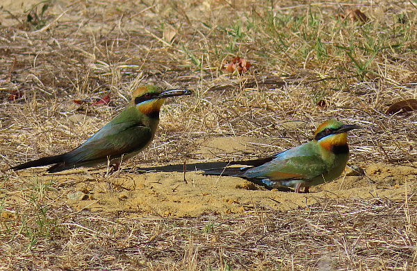 This pair of bee-eaters are about to enter the tunnel with insects which I imagine is for their young inside.