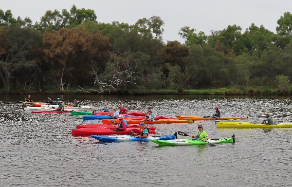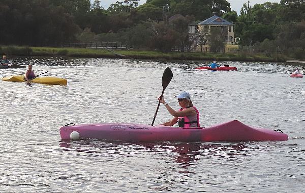 spoonbill perched on a dead tree. By the time we had circled half the island Bonnie was ready for a coffee so we paddled across to the Swan Café next to Ascot Kayak Club for a cuppa and later headed home.