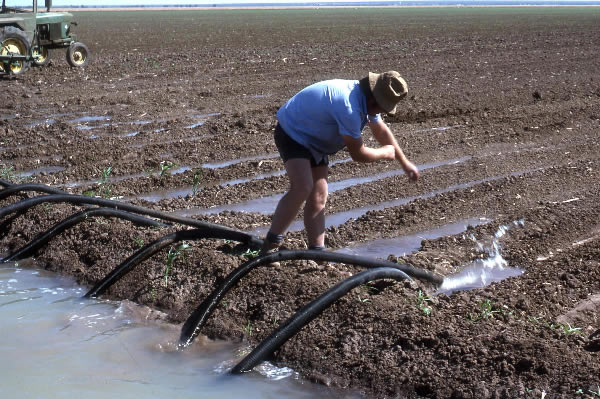 Farm manager Bob Kirby siphoning water from the irrigation channels to the massive paddocks. I started off working on the tractors and machines but within 3 months I became the assistant farm manager. The water to irrigate was from a diversion dam which was fed by the Fitzroy River. We mainly grew sorghum and a little rice, which fed the cattle in the feedlot which was part of the huge cattle/farming station run by the Americans.