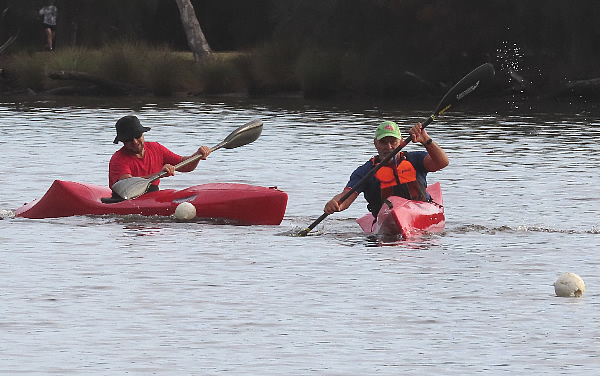 Paddlers chasing each other.