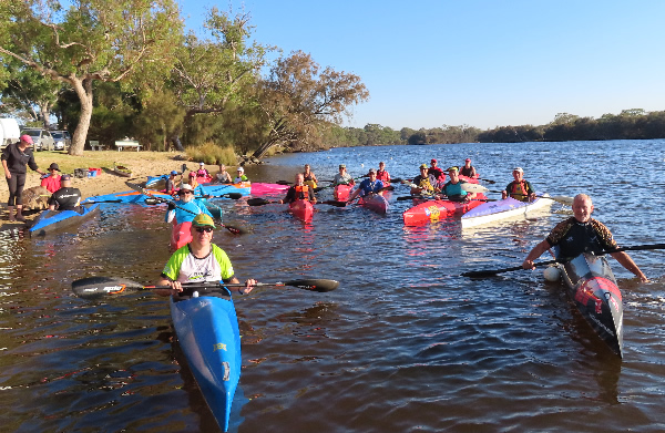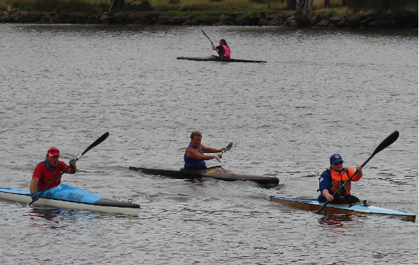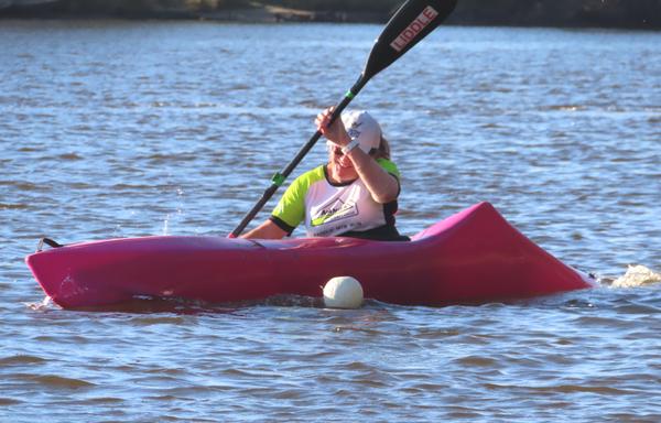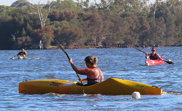 Wild Water Kayak like Mikes is faster than the Wavehopper that Jane, Kate and Jeannette are paddling.