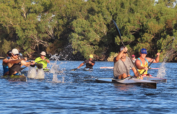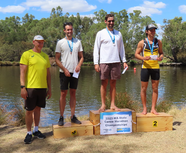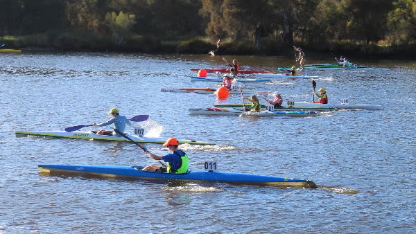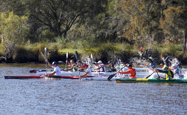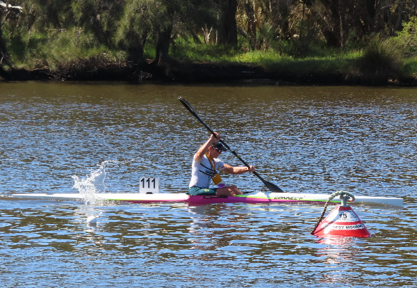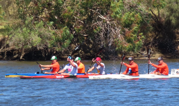 WA Marathon Championships 2023 Entries were down from last year because of the Australian Sprint Championships being 3 days after, a wedding involving a few paddlers and I suppose paddlers that could have taken part to help promote the sport not bothering. The main single races started after the junior and short course race which was around 9.00am. The 65+ paddlers were in grid 4. Luckily there was enough kayak paddlers in the over 70s to make a class, but I still had the powerful Peter Pawlow in my class so it was virtually impossible for me to win, but if I had been in the 65+ category I would have been competing against Dave Berglund as well, who is another powerhouse. These two paddlers were at the top of the ladder in the