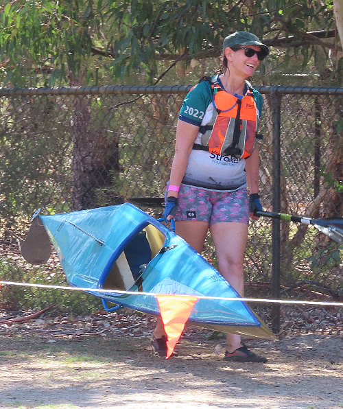 time. (The portage distance at the Australian Marathon Championships is 200 metres with a pontoon style in and out, so our top paddlers have been portaging 256 metres in practise.) I’m pretty proud of people like Kate Crossing who had never portaged before and had to do 4 portages, paddle 18.5kms and lift a heavy kayak 170 metres. Several other women also did extremely