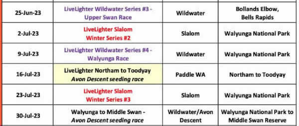 12.00 noon Sunday 6th August 9.00am - 12 noon Cost: $60.00 AKC club members / $120.00 non club members Location: Walyunga National Park (subject to water levels) What to Bring: Your own kayak and gear Please note the sessions are subject to water levels. If there are any changes we will advise 24 hours prior. Walyunga