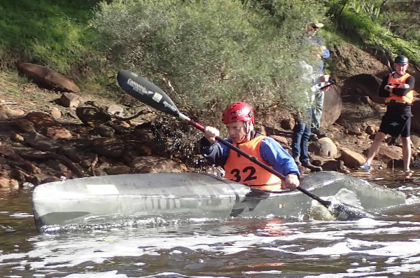 Walyunga Wild Water Race #4 It turned out being such a glorious morning which is always appreciated when we have a bit of hanging around to do before and between events. We were at Walyunga National Park to paddle two individual 600 metre rapid races and one team event in Wild Water Kayaks, Wavehoppers and other sundry class boats, which included some skis. There were 46 races. 33 in Wild Water type Kayaks and 13 Sundry Craft. The idea is to paddle down the rapids as fast as you can. Then walk your kayak back up to the start for another run. Being more of a marathon paddler I must admit I like a longer race, although the young sprinters love shorter races, but a day amongst the hills, trees, whitewater and the chance to chatter is always pleasing and good for