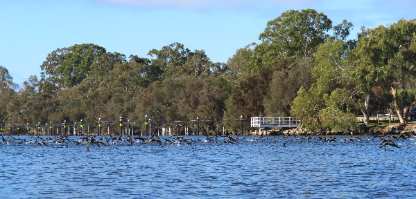 Hundreds of Little Black Cormorants feeding near Ascot Kayak Club.