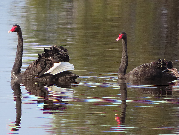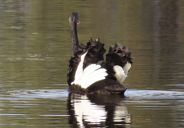 I don't often see the white feathers of a black swan unless they are flying or having a bath..