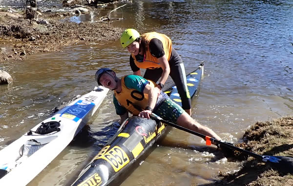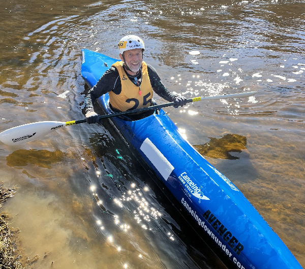 Pool, before Extracts Weir Peter Tomczak and Sharon Copley caught me up in a double. I managed to stay beside them for a minute or two then I was dropped when we hit some shallows, nevertheless I tried desperately to stay on their rear wash. Knowing it was only 6-7 kms to the finish line I just gave it my all and somehow, with a lot of effort, I was able to stay on their rear wash until we arrived at Extracts Weir. With the knowledge that I don’t waste much time on a portage and the fact my