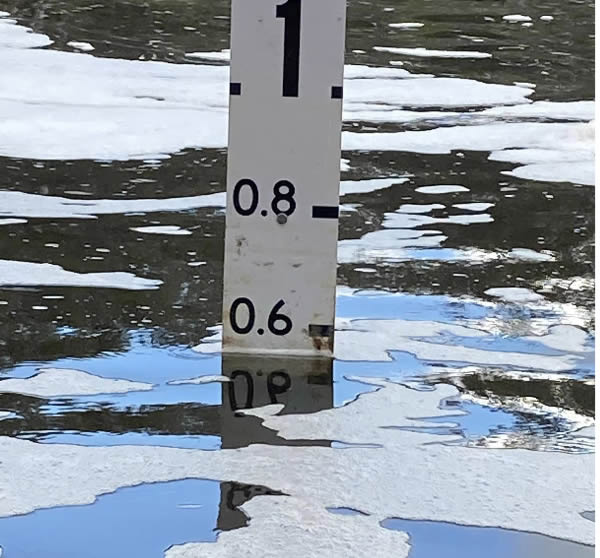 John's kayak had slipped off the pontoon. Luckily he had attached his paddle leash to the pontoon which had saved it from being swept away.