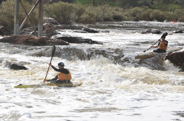 As I came up to Bells Rapid I could see the double pair of Joe Dowse and Gordon Lentz having problems and were loitering near the top of Bells Drop. Just as I was headed for the drop they also started to move towards it. I thought to myself, oh dear this is not going to be good. I suddenly had to back off my speed as they beat me to the top of the drop and then adjust my line to make sure I was able