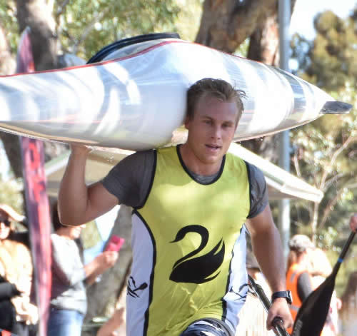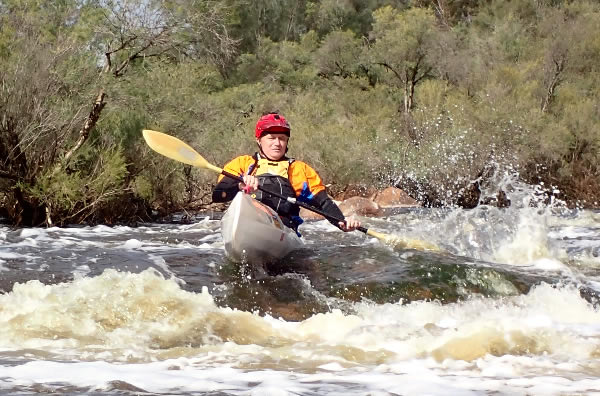With cheers from Geraint Madison, who was doing split times at Bolland’s Elbow I was away heading downstream with only a few T trees and flat water ahead. I had a quick glance behind to see no-one close, but about 4 kilometres later young Connor Jacob and two others were on my tail. I didn’t mind Connor passing because he is a young gun and destined to be WAs best but I didn’t like Phil Edwards, who