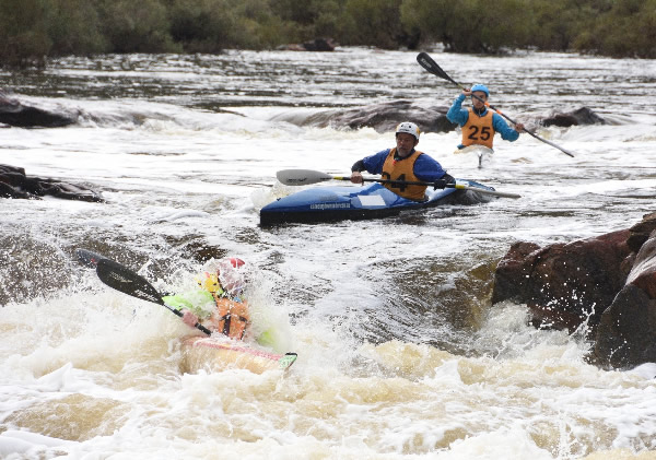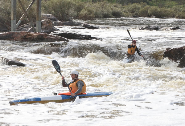 and Phil Langley are two fast paddlers that I am competing against in the Avon in WW kayaks. Photo Lawrence Greed.