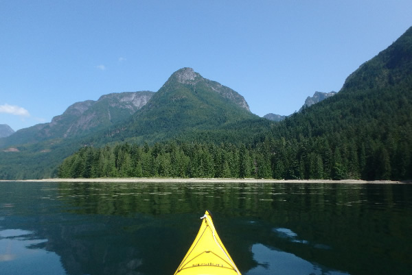 It was the 4th August 2019 - Canadian Coastline - Inside Passage 4 Years to the Day The further north we travelled the more isolated we became, but in certain areas such as Desolation Sound, a marine park, we unexpectedly came across people and boats. We felt a little annoyed to see so many people but it was very understandable as the scenery in the area was pretty spectacular. When we turned into the sound two killer whales appeared; one sliding extremely close to Luke’s kayak and leisurely swimming a few metres from us before disappearing behind. It was the first killer whale I had seen from a kayak so it was a special moment. Not only were we excited seeing such stunning scenery we now were overjoyed seeing our first killer whale. Over the next few kilometres Mount Denman (1920 m), the highest peak in the area, looking a bit like the Matterhorn was the centre piece of the stunning mountain range we were headed towards. It was a privilege to be able to paddle here, especially after seeing so many beautiful photographs of the mountain on the internet.