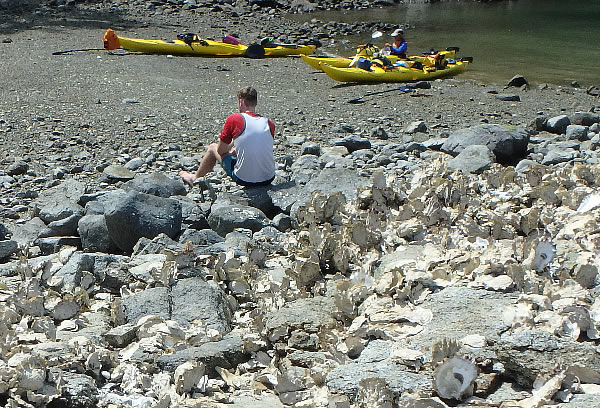 It looked like the perfect beach from a distance but in fact the shoreline was covered with thousands of huge oysters. |