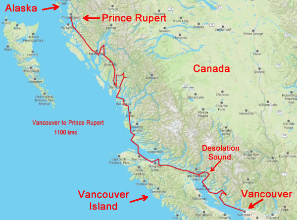 surrounding it. Compared to the vast expanse and height of the mountains we were like pinheads. There was always something to grab our attention; waterfalls, whales, small dolphins, sea-lions, eagles, a multitude of islands, and the highest monthly rise and fall of the tide which created tide races, boils, whirlpools and strong