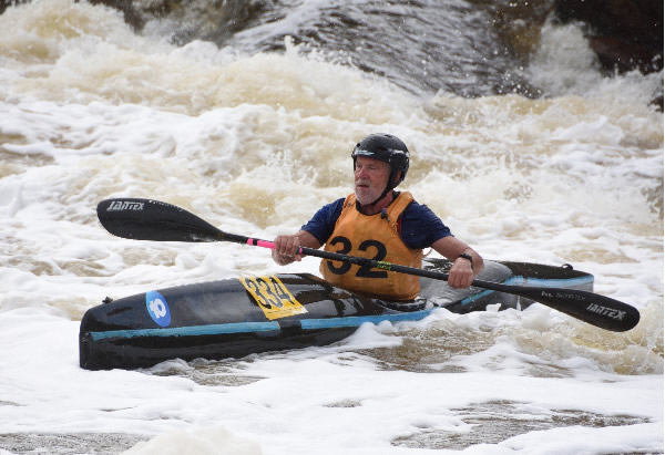 young Connor Jacob pulled beside me. I thought he would put the pressure on and pass but he didn’t and when we got to Bells Rapid I told him to go ahead, but he was just happy to follow me. Having written a book on the Avon River does put some pressure on me as other paddlers think I know where to go. I usually do, but I’m not perfect and sometimes I might not paddle the rapid the way I should. When paddlers are following me though, it does put the pressure on me even more. I remember one year when the river was low I had decided to do a long portage on the second day of the t-trees.