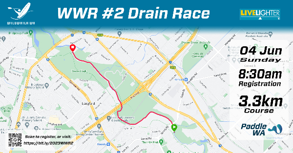 Course: Starting and finishing at Hester Park, paddlers make their way upstream to the starting point (drain) with the return leg being the race.