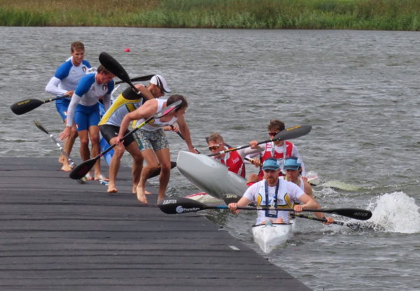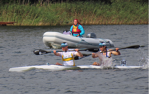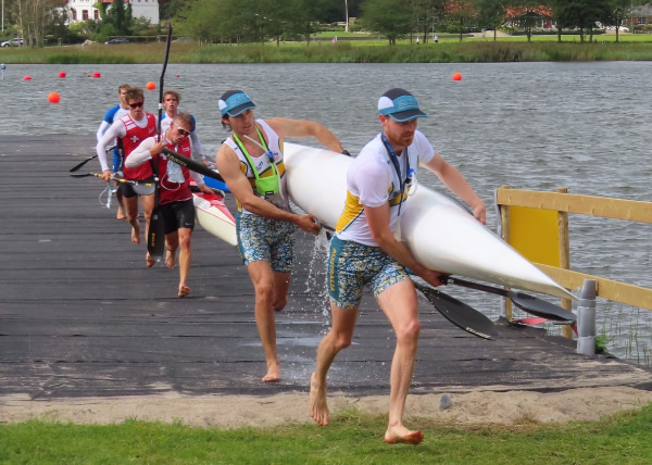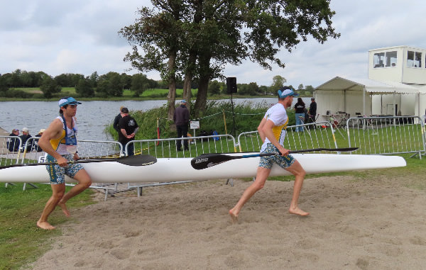 World K2 Mens Open Championships 2023 Denmark The Mens K2 race was nail biting right to the end with the first 3 teams only separated by 1.3 seconds. Even the 6th place team was only 22 seconds behind and 11 of the 24 teams were less than a minute behind. Australia's Joaquin Cuevas & David Cole came 19th and Coran and Stephan were 21st. Considering Coran and Stephan's ages and the lack of racing experience at an international level, and the high standard of competition, they paddled very well and it must have been a great learning experience for them. I hope it has wetted their appetite for future racing. They also had a leak in their kayak after another kayak hit them and damaged the post of the rudder. After that the kayak was leaking badly.