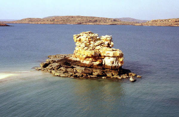 Leaving Montague Sound and the sight of the 152m Sharp Peak, I rounded the tricky and unwieldy Cape Voltaire, my last troublesome point before Mitchell Plateau. As I passed Krait Bay and entered Voltaire Passage I was stunned to see the frightening sight of the sea crashing violently onto an extended reef. My