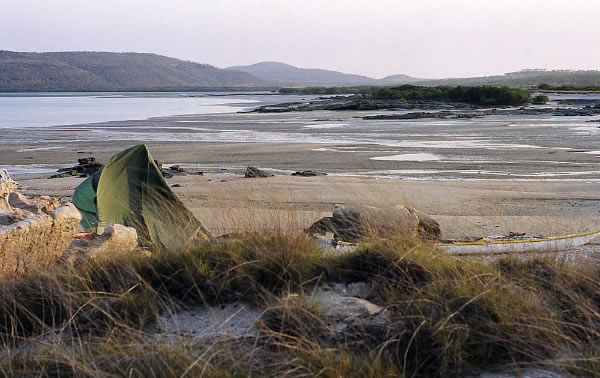 concentrate on paddling. The difference it made was incredible, I made a remarkable recovery and felt much better. Moving into Crystal Creek Bay I discovered a beach just around the corner in the shelter of the point.
