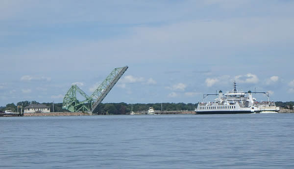 18th August 2017 - Six Years to the Day We rose early so to be able to reach Kingston around lunchtime. Getting closer to the town 150 or more sailing boats, sailed by students were out on the water going nowhere as there was no wind. It was a spectacle but we were hoping that they weren’t going to return to shore when we are passing through. They must have heard us as minutes later they started being towed in by power boats, some 5 being towed at once. They were coming from all directions across