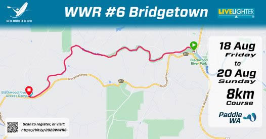 18th, 19th, 20th August The last of 6 races for the 2023 WildWater Season. Location: Blackwood River Park, Bridgetown Race Events: Teams Race (Sat), Geegelup Cup (Sun) Registration: 01:00pm (Sat) & 09:00am (Sun) Briefing: 01:40pm (Sat) & 09:40am (Sun) Race start: 02:00pm (Sun) & 10:00am (Sun) Course: Starting upstream of the town bridge and finishing 8kms downstream. The course comprises of rapids, winding sections of moving water and ti tree obstacles. https://bit.ly/2023WWR6 or https://www.webscorer.com/registerseries?seriesid=322369 |
