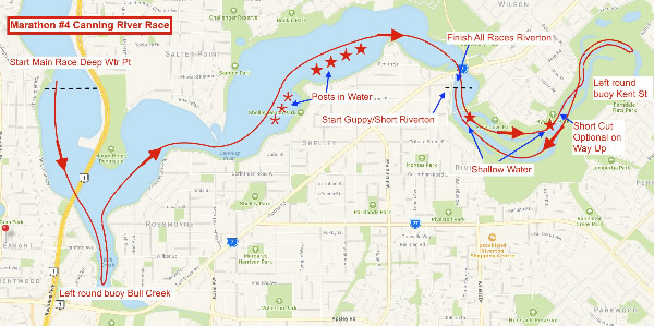 permitted on way up], left round buoy. Finish at Riverton Drive.