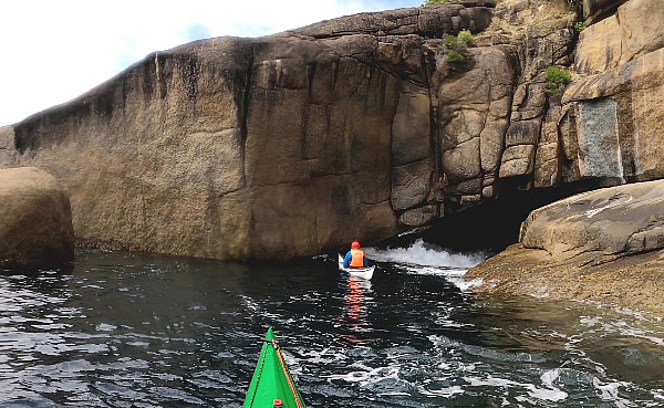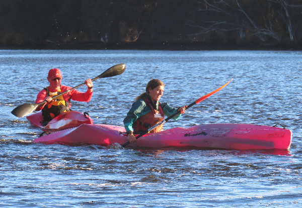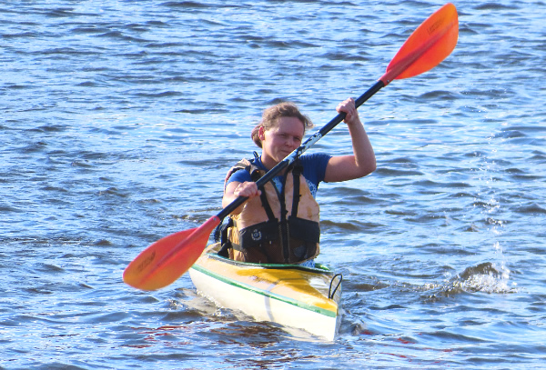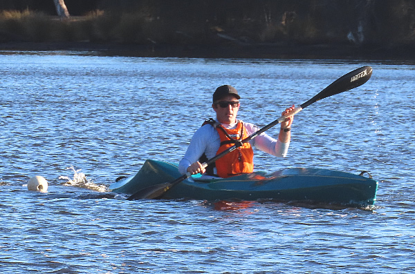 I followed the wide river in a big U turn getting good views of limestone cliffs and being thrown around by the wind waves. At the Golden Eagle ferry crossing two jet skiers stopped to ask me what I was doing and telling me I had guts being out there in the rough conditions. As they left one ski got hooked up onto my rudder and nearly took me with him. Luckily he didn't.