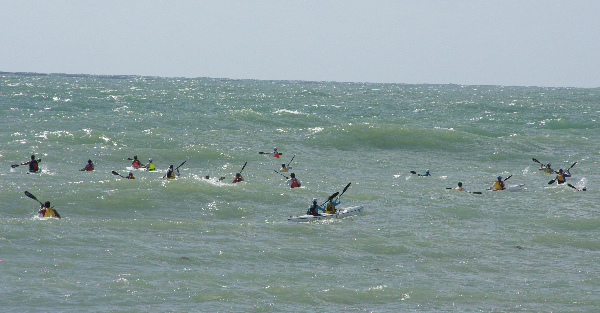The sea starts to get interesting as paddlers enter the ocean. They are suppose to be heading to the