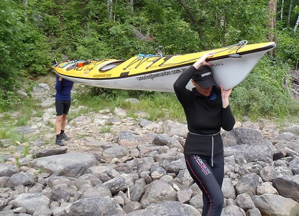 It wasn't easy carrying a heavy double kayak across rough tracks and boulders. Some of the longer portages took up to 7.5 hours.