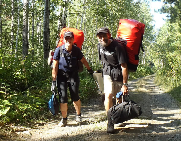 my 2011 expedition across Canada I had a lot of portaging to do. These portages below were on the section of my journey when I teamed up with Alaine Davin and Leonie Cockman. We started this journey at Kenora where I met Alaine and Leonie after paddling 2600kms solo from the Rocky Mountains. I had already portaged many times, but on this next