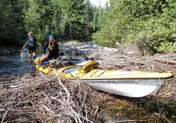 Some lakes had streams connecting them so we were able to pull our kayaks up shallow water over rocky rapids and beaver dams.