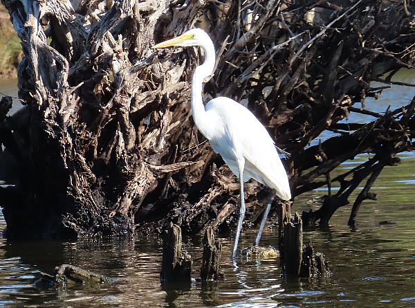 With this hot weather most birds seem to be hiding or up too early to be seen by me, but the Great Egret doesn't seem to mind the hot weather.