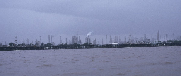 major road heading up to Baton Rouge, the capital of Louisiana. It had been hot on the river but it was hotter on the road. I passed a lot of industry when I paddled the river from Baton Rouge to New Orleans and now I could see the same smokestacks of the chemical plants in the distance, but this time, from the highway. The road verges were littered with glass, metal and pieces of